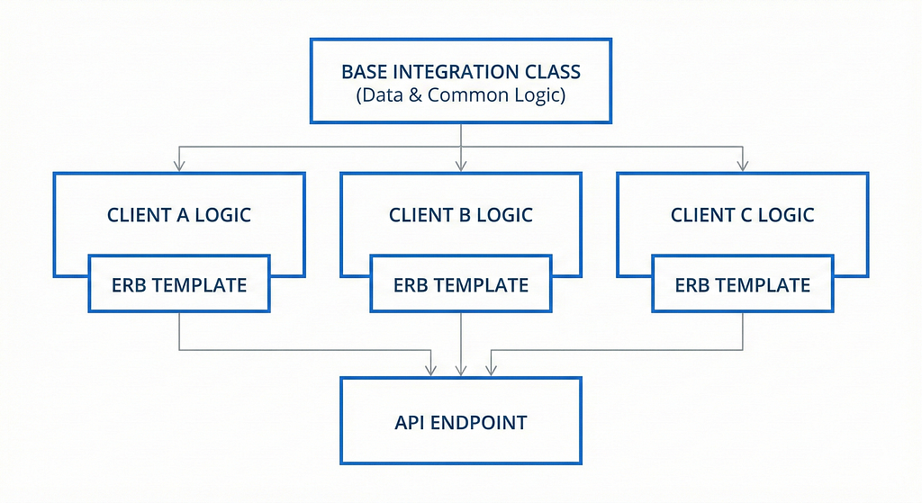 Started new integrations on the new architecture and slowly developed it to support all previous integrations. Migrating existing integrations to the new architecture was only possible through close client partnerships. There was no way to distinguish between client-specific logic and general logic without asking.