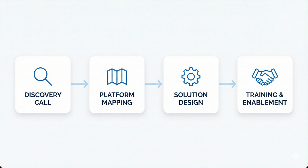 - Solution design — figure out how their ERP works and design the right data flow between systems